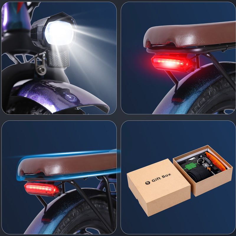 1 x Gift box (Includes 1*Inner tube, 2*Valve caps, 1*wheel reflector, 2*Battery fuses, 2*Brake linings, 1*key chain)